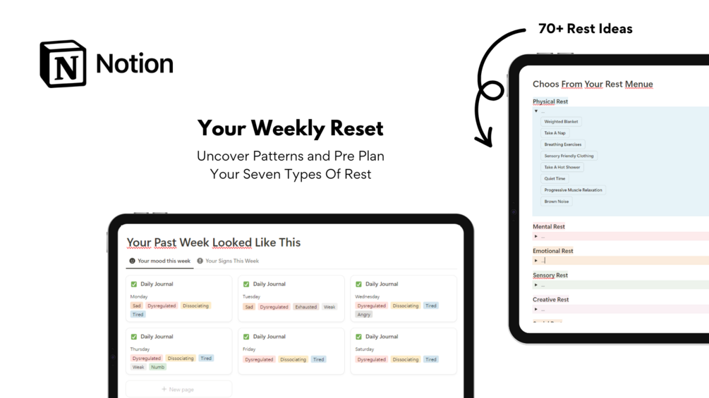 Say goodbye to burnout and exhaustion - this free Notion template makes it effortless to track your moods, symptoms, and energy levels, so you can uncover your unmet needs and start meeting them today.